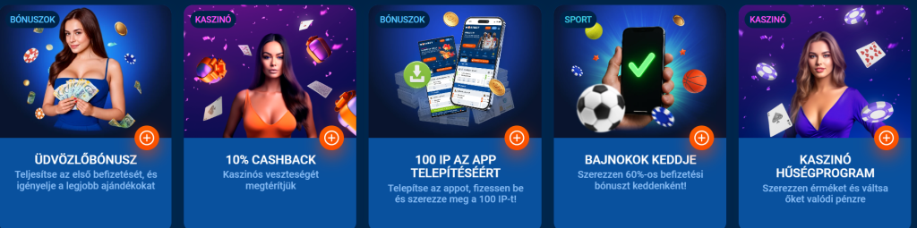 A bónuszok aktiválása gyors és egyszerű — elég egy új fiókot létrehozni, befizetni legalább 5 000 forintot, majd kiválasztani a kívánt promóciót.